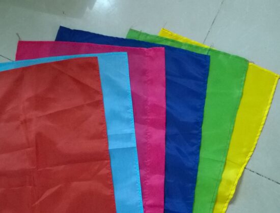 Xưởng may cờ Hoàng Gia sử dụng vải phi bóng cao cấp chuyên dùng cho cờ lễ hội:
