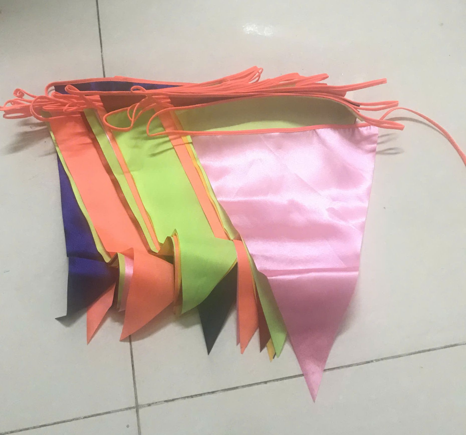 Cờ dây tam giác vải phi bóng màu sắc tươi, không phai.