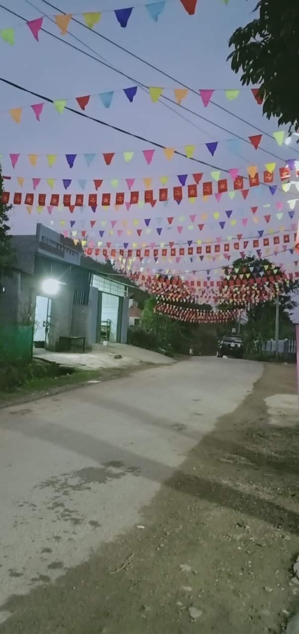 Cờ dây nhiều màu thích hợp trang trí đường làng và khu vui chơi.