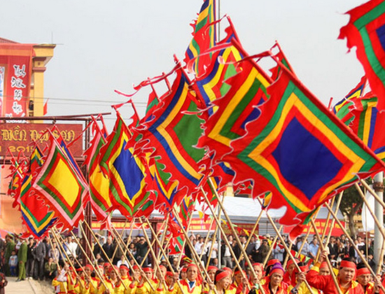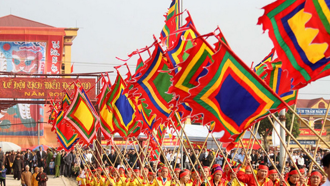 Cờ Thần trang trí lễ hội, chuẩn phong thủy, giúp tăng không khí trang nghiêm và linh thiêng.