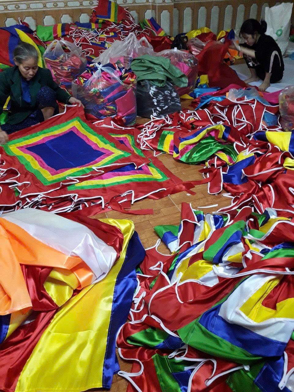 Để đáp ứng nhu cầu ngày càng cao của khách hàng, xưởng may cờ Hoàng Gia chuyên nhận may cờ Thần chất lượng cao theo chuẩn truyền thống. Với xưởng may trực tiếp và đội ngũ thợ lành nghề, Hoàng Gia mang đến những sản phẩm đáp ứng đầy đủ các tiêu chí về chất lượng và thẩm mỹ.