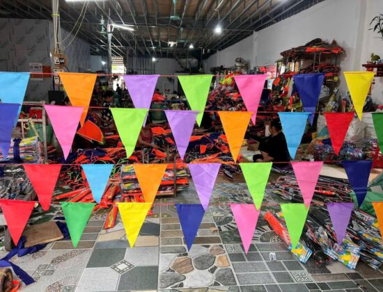 Toàn bộ cờ dây tam giác được sản xuất trực tiếp tại xưởng, giúp đảm bảo chất lượng đồng đều và tối ưu chi phí cho khách hàng.