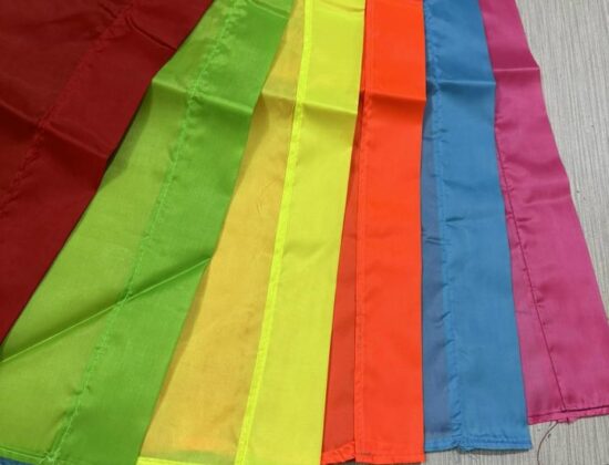 Vải phi bóng cao cấp: nhẹ, bắt sáng tốt, phù hợp cờ chuối dài