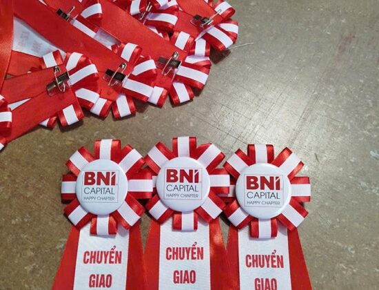 Mô tả: Xưởng May Cờ Hoàng Gia chuyên sản xuất mẫu hoa cài áo phục vụ hội nghị và sự kiện trang trọng. Gia công trực tiếp tại xưởng giúp kiểm soát chất lượng tốt, form dáng ổn định, màu sắc bền đẹp, đáp ứng hiệu quả các đơn hàng số lượng lớn
