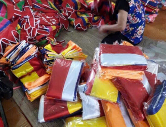 Từng lá cờ được kiểm tra kỹ trước khi xuất xưởng, đảm bảo đồng đều về màu sắc và kích thước.